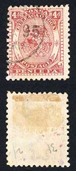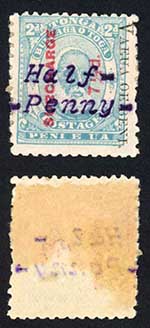 Tonga SG30d 1d on 2 1/2d vermilion Stop after Postage used Cat 150 pounds
