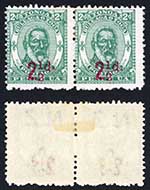 Tonga SG73 2 1/2d Imprint Strip (central perfs strengthened) Cat 88 pounds
