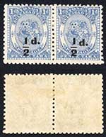 Tonga SG19 1/2d on 1d in Black Mint (no gum) Pair Cat 100 pounds