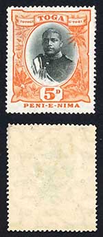 Tonga SG50 1/- Poss. 51 and 52 showing Retouches at top left U/M