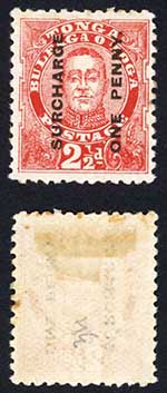 Tonga SG30e 1d on 2 1/2d vermilion Error 7 for 1 in 1/2 M/M Cat 300 pounds