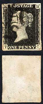 Penny Black (OD/OE) Plate 5 adjoining singles one piece Four Margin