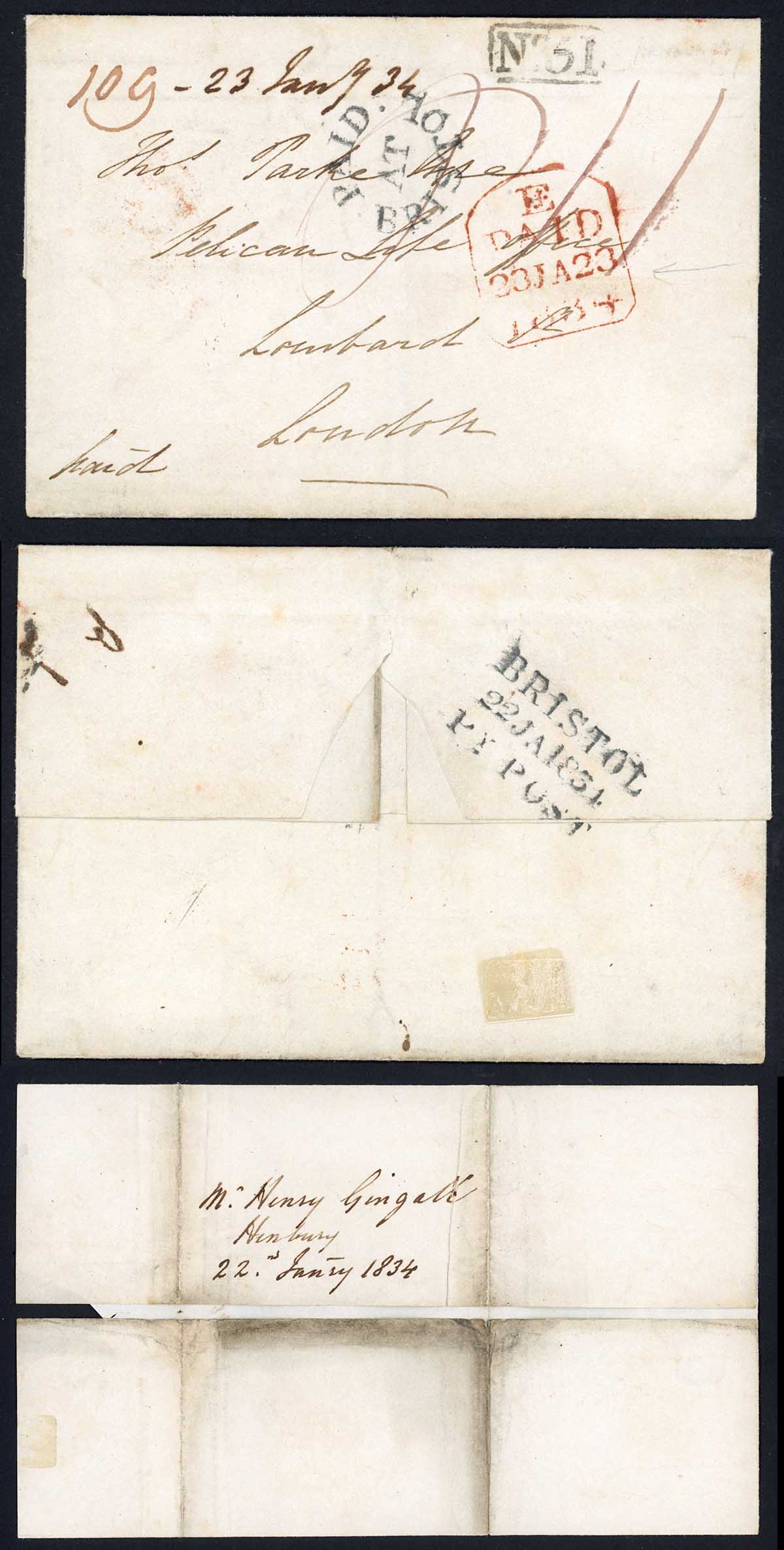 1834 Cover with Bristol Penny Post and Paid at Bristol Hand Stamp