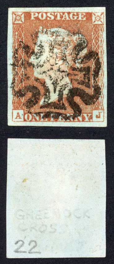 1841 Penny Red (AJ) Plate 22 Fine Four Margins Cat 60 pounds