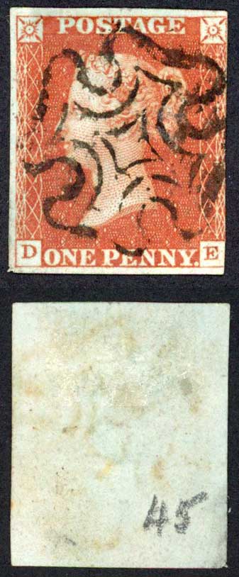 1841 Penny Red (DE) Plate 45 Three Margins Black Cross Cat 150 pounds