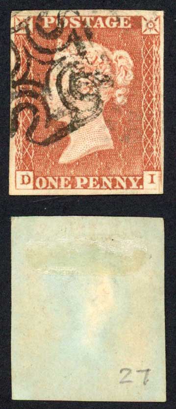 1841 Penny Red (DI) Plate 27 Fine Four Margins Cat 60 pounds
