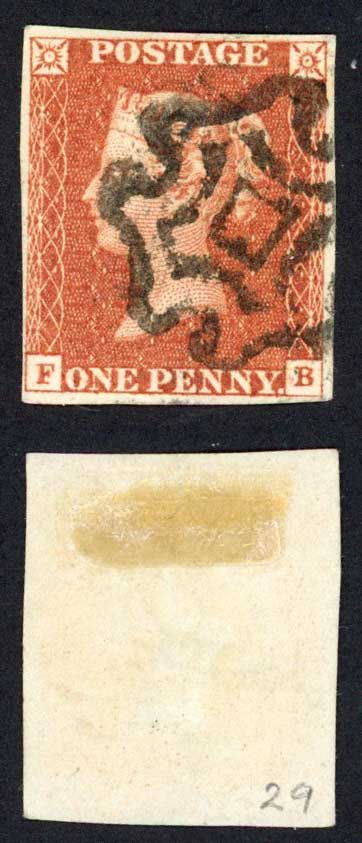 1841 Penny Red (FB) Plate 29 Fine Four Margins NORWICH Cross Cat 450 Pounds