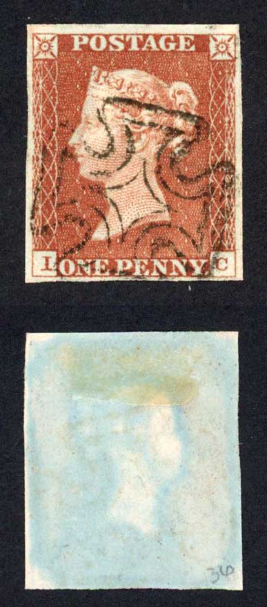 1841 Penny Red (IC) Plate 36 Fine Four Margins BELFAST Cross Cat 250 Pounds