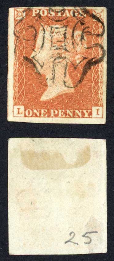 1841 Penny Red (LI) Plate 25 Four Margins EDINBURGH Cross Cat 120 pounds