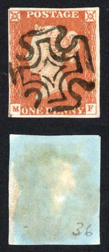 1841 Penny Red (MF) Plate 36 Four Margins (Thin) Cat 60 pounds