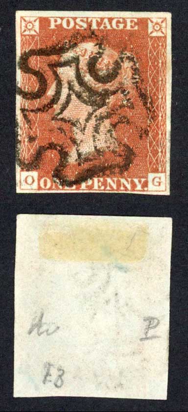 1841 Penny Red (OG) Plate 13 with Double Letter (G) Cat from 200 pounds