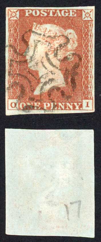 1841 Penny Red (OI) Plate 17 Fine Four Margins Cat 140 pounds