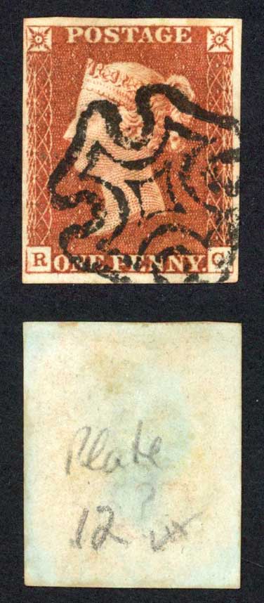 1841 Penny Red (RC) Plate 12 Fine Four Margins Cat 90 pounds