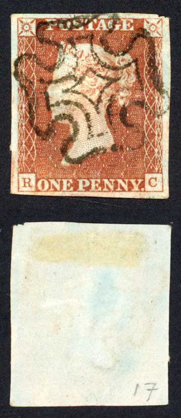 1841 Penny Red (RC) Plate 17 Fine Four Margins Cat 140 pounds
