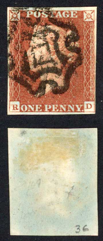 1841 Penny Red (RD) Plate 36 Fine Four Margins NORWICH Cross Cat 450 Pounds