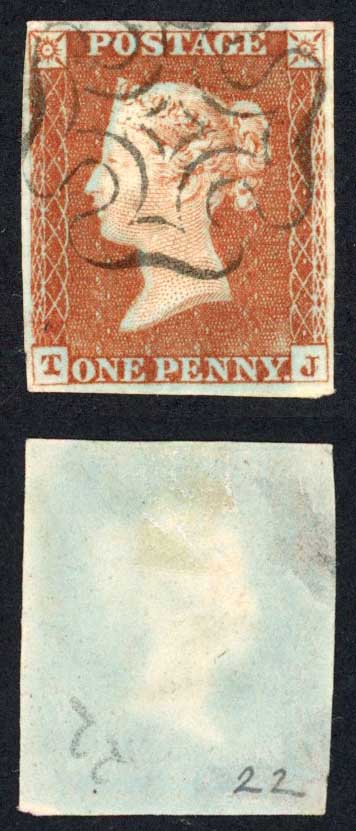 1841 Penny Red (TJ) Plate 22 Four Margins (thin) SUPERB EDINBURGH Cross Cat 120 pounds