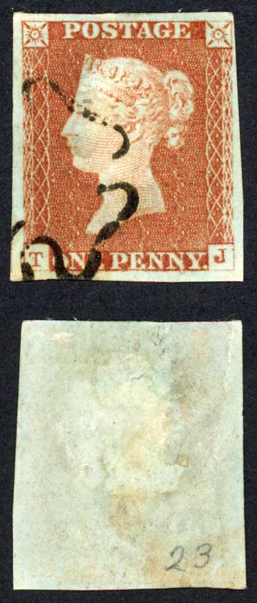 1841 Penny Red (TJ) Plate 23 Fine Four Margins HOLLOW CENTRE Cross