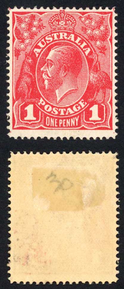 Australia SG21 1d Carmine Red Die 1 line perf M/M Cat 48 pounds