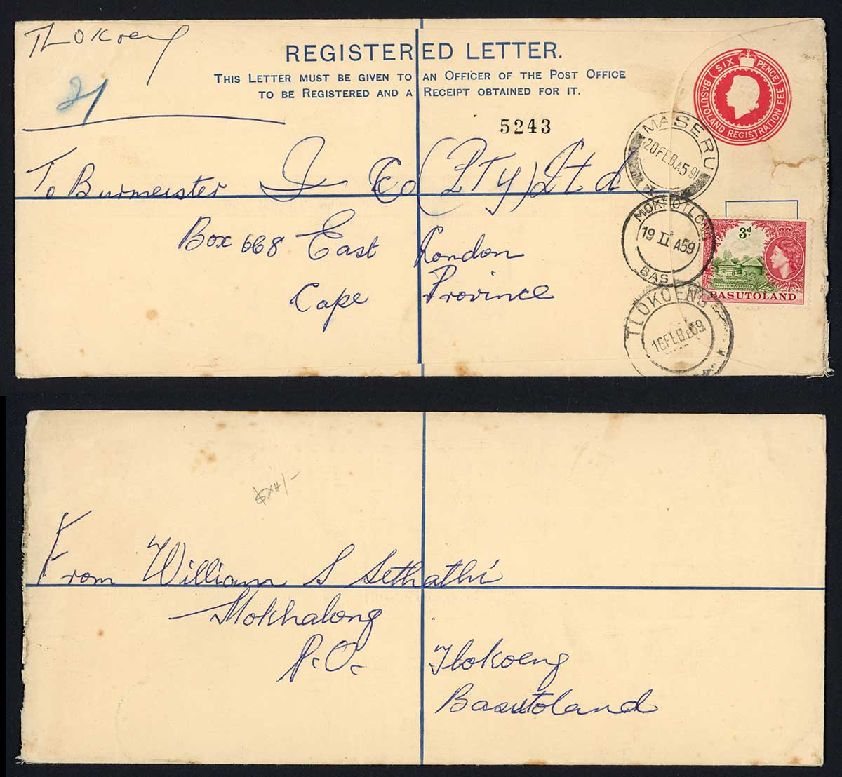 Basutoland 1959 uprated registered envelope
