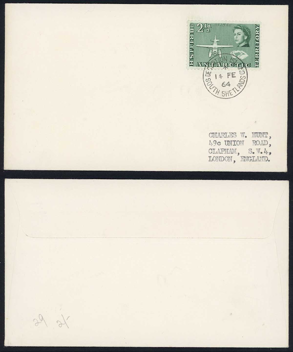BAT 1964 from Deception Island South Shetland on cover to London
