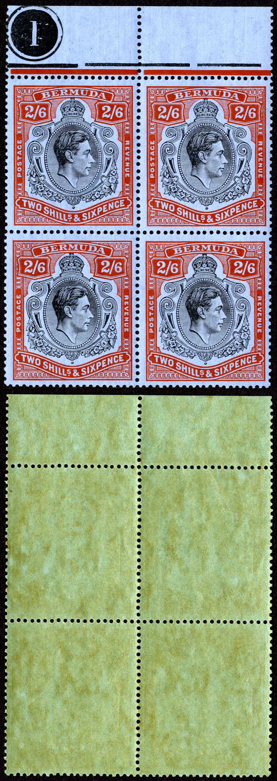 Bermuda SG117 2/6 Black and Red/grey blue Block U/M Cat 280 pounds