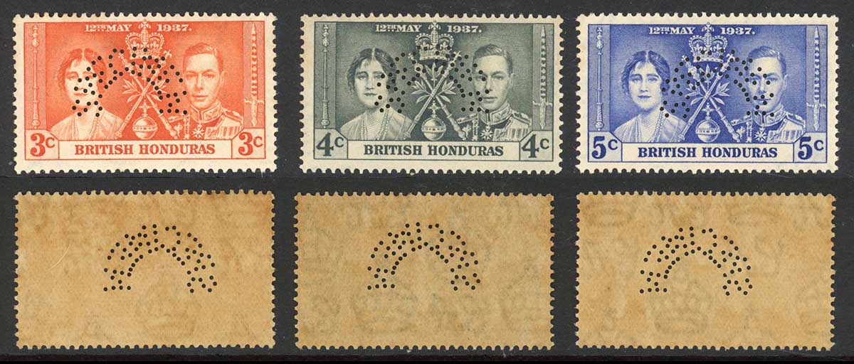 British Honduras SG147s/9s Coronation Set PERF SPECIMEN U/M (toned) Cat 100