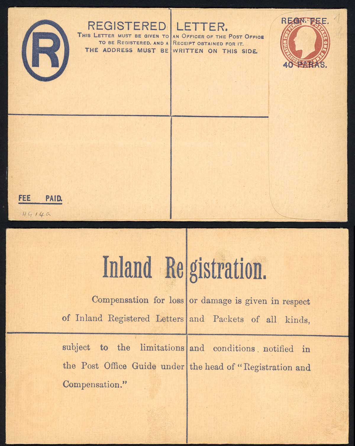 British Levant KEVII 40 Paras O/P on 3d Brown Registered Letter Size G