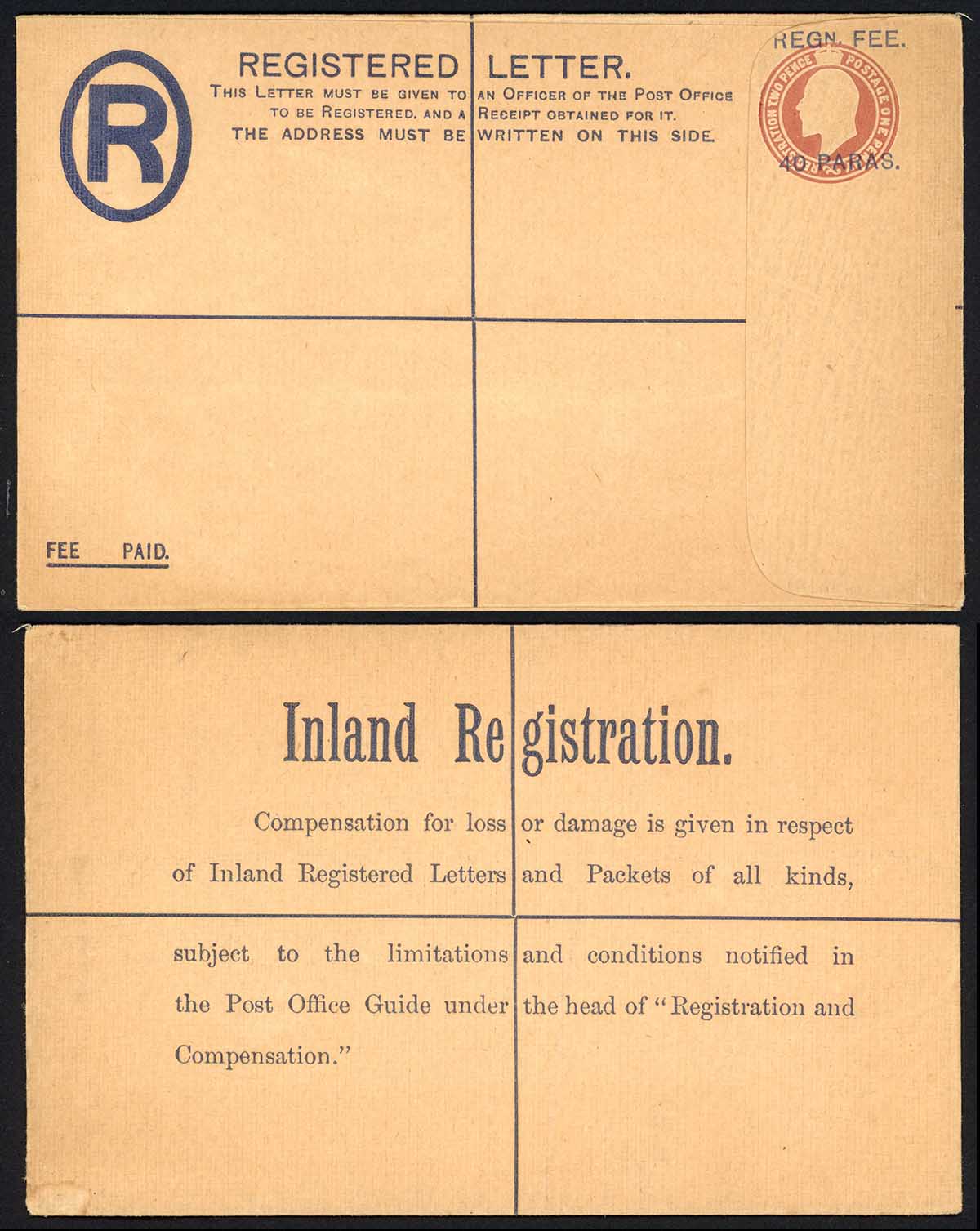 British Levant KEVII 40 Paras O/P on 3d Brown Registered Letter Size G
