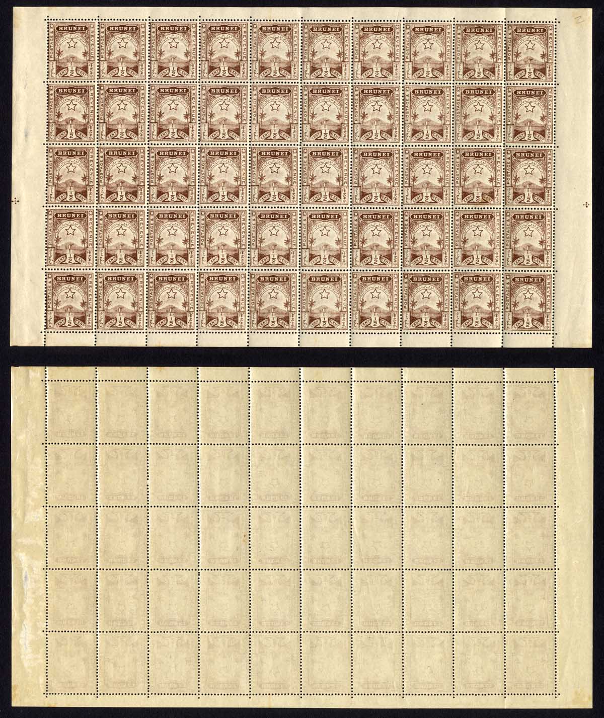 Brunei SG1 1/2c Brown Sheet of 50 Cat 400++ pounds