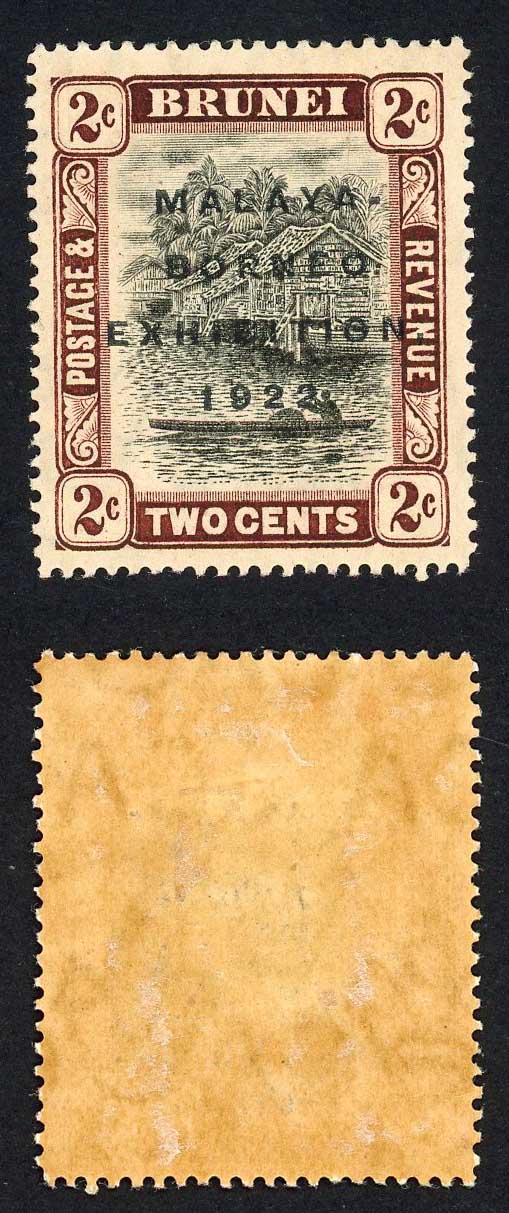 Brunei SG52a 2c with Short I in Exhibition M/M (brown Gum) Cat 20 pounds