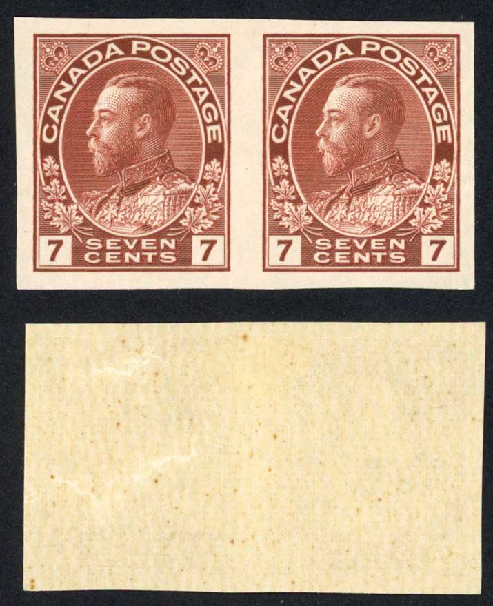 Canada SG251 1922-31 7c red-brown imperf pair M/M