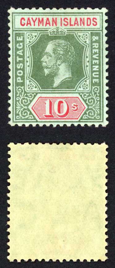 Cayman Is SG52c 10/- Olive Back Wmk MCA U/M Cat 150 pounds