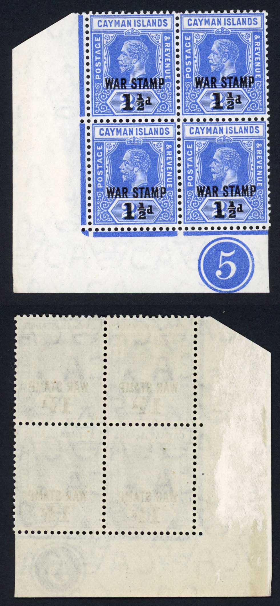 Cayman Is SG56 1 1/2d on 2 1/2d Plate Block (2 x U/M)