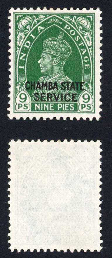 Chamba SGO66 KGVI 9p Green Mint No gum Cat 50 pounds