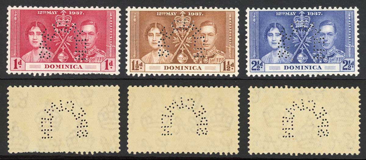 Dominica SG96s/8s Coronation Set PERF SPECIMEN M/M Cat 100 pounds