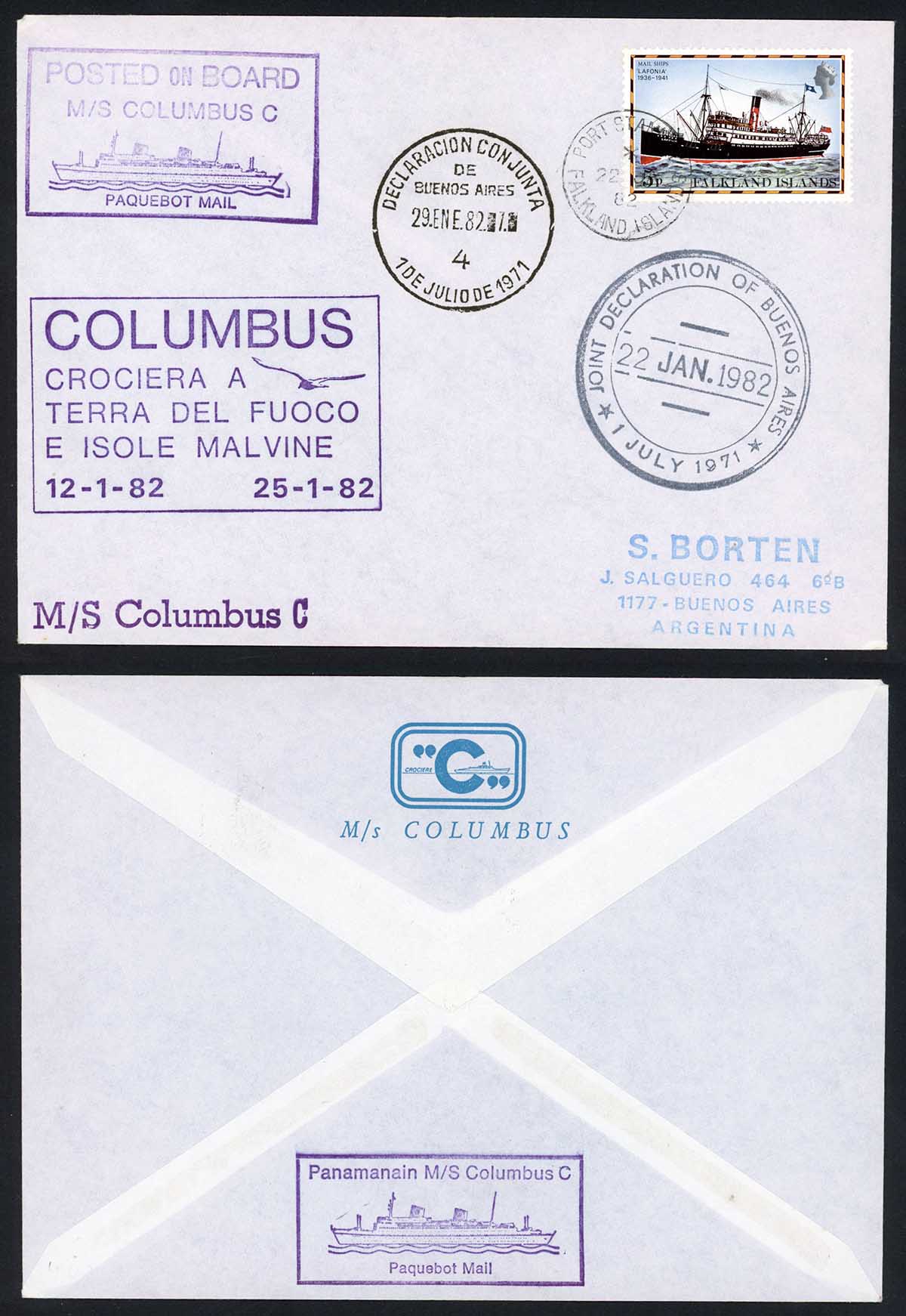 Falkland Is 1982 Posted on Board MS Columbus cover to Argentina