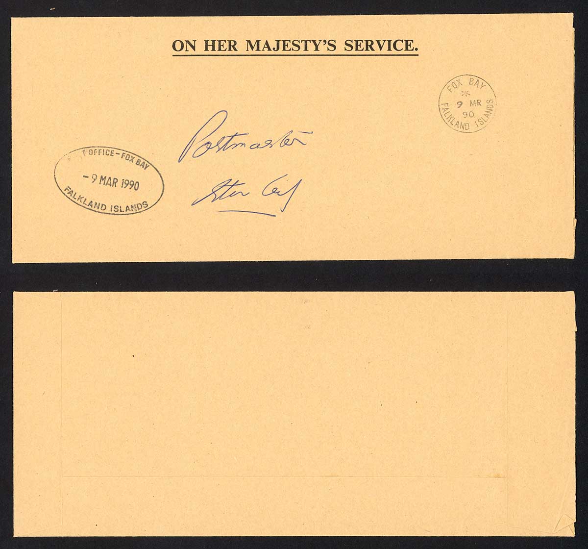 Falkland Is 1990 OHMS Paid Official Cover from Fox Bay
