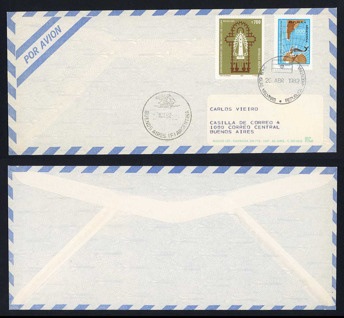 Falkland Is 26 ABR 1982 cover with Argentina stamps BOGUS Postmark