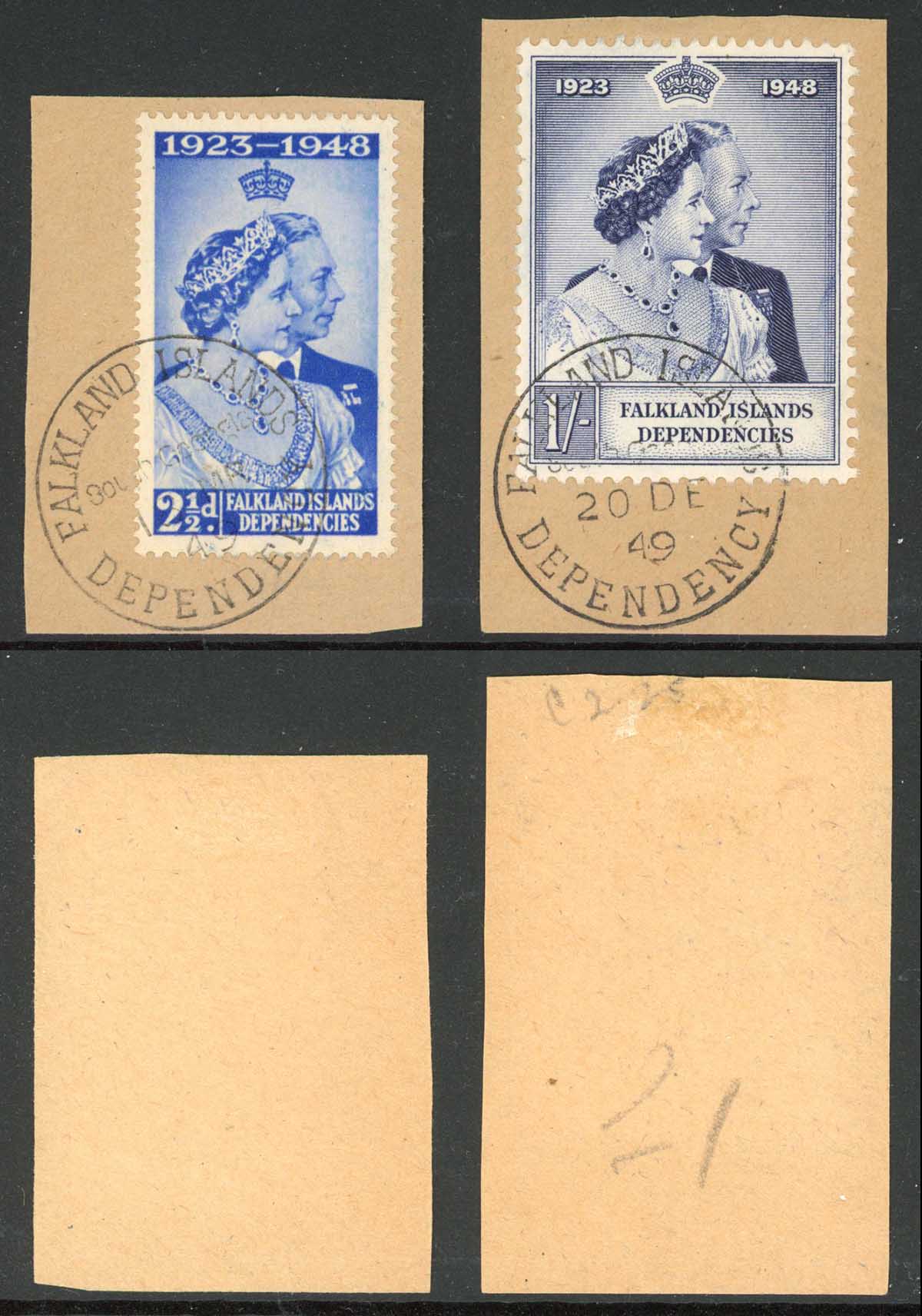 Falkland Is Dep SGG19/G20 Silver Wedding CDS set on piece Cat 9++ pounds