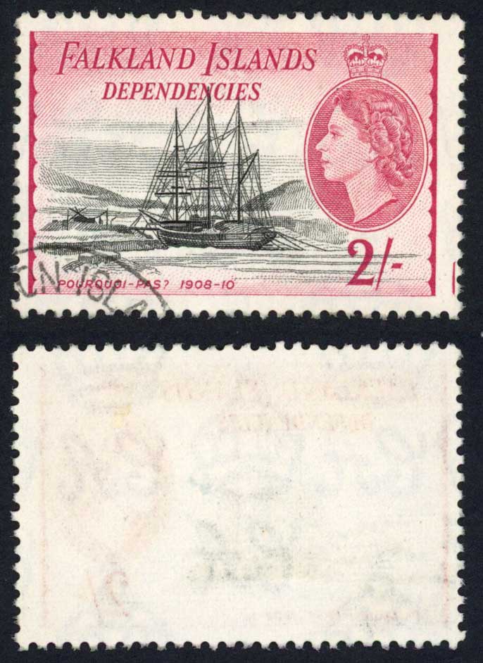Falkland Is Dep SGG36 2/- Black and Carmine CDS Cat 20 pounds