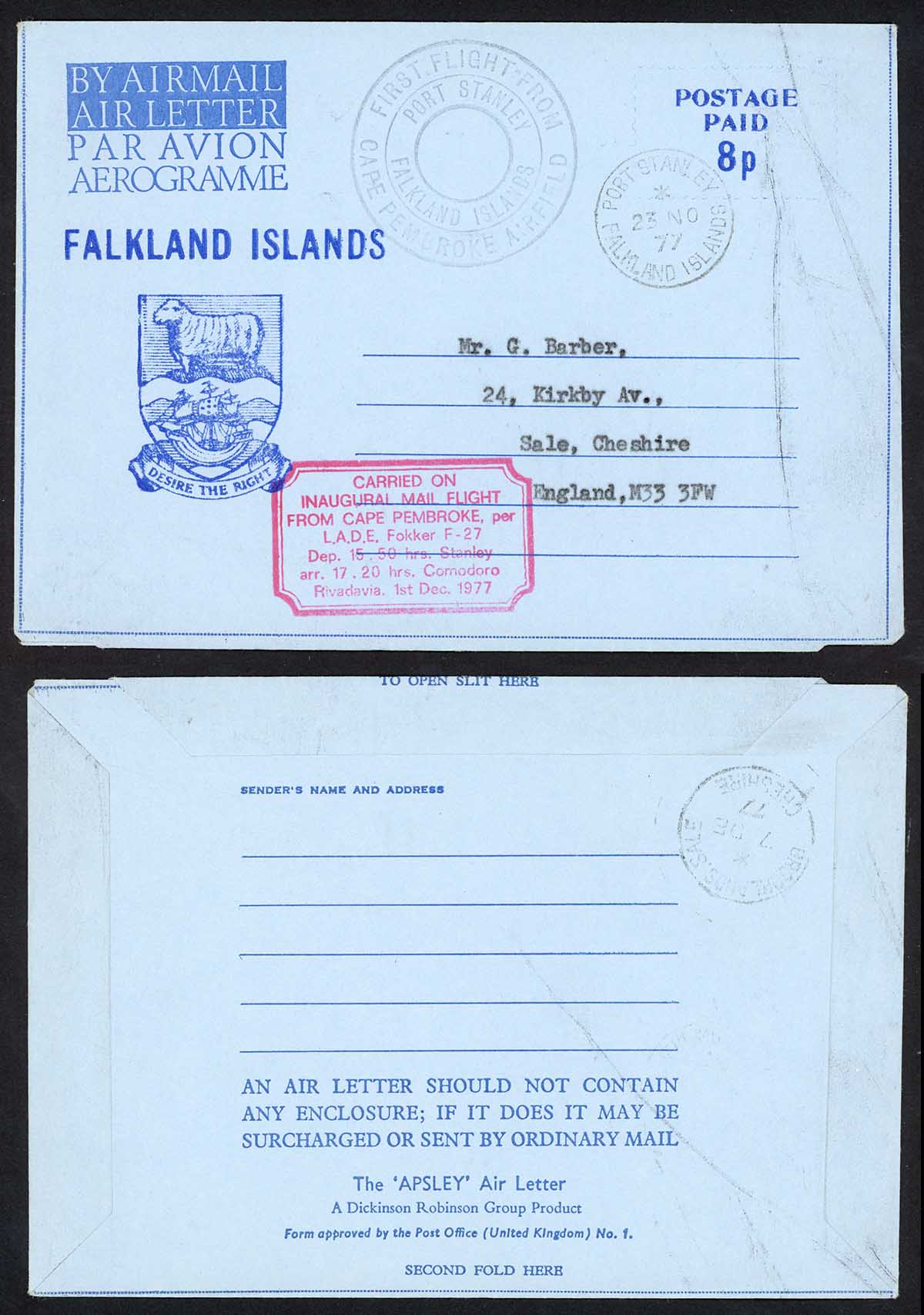 Falkland Is First Flight from Cape Pembroke on 8p Airletter
