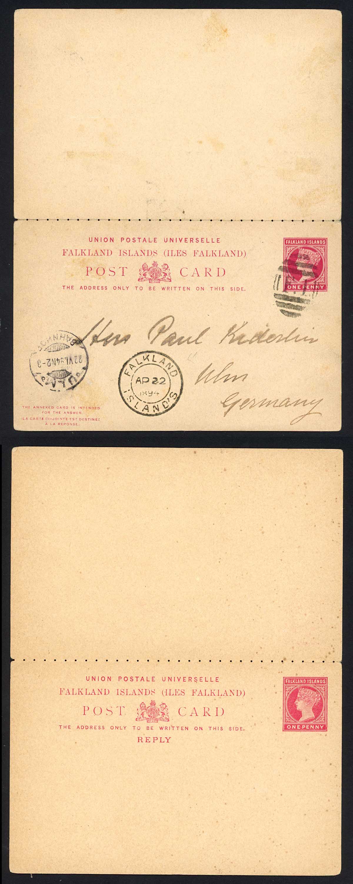 Falkland Is Heijtz P4 QV 1d Reply card used to Germany (Kiderlen)