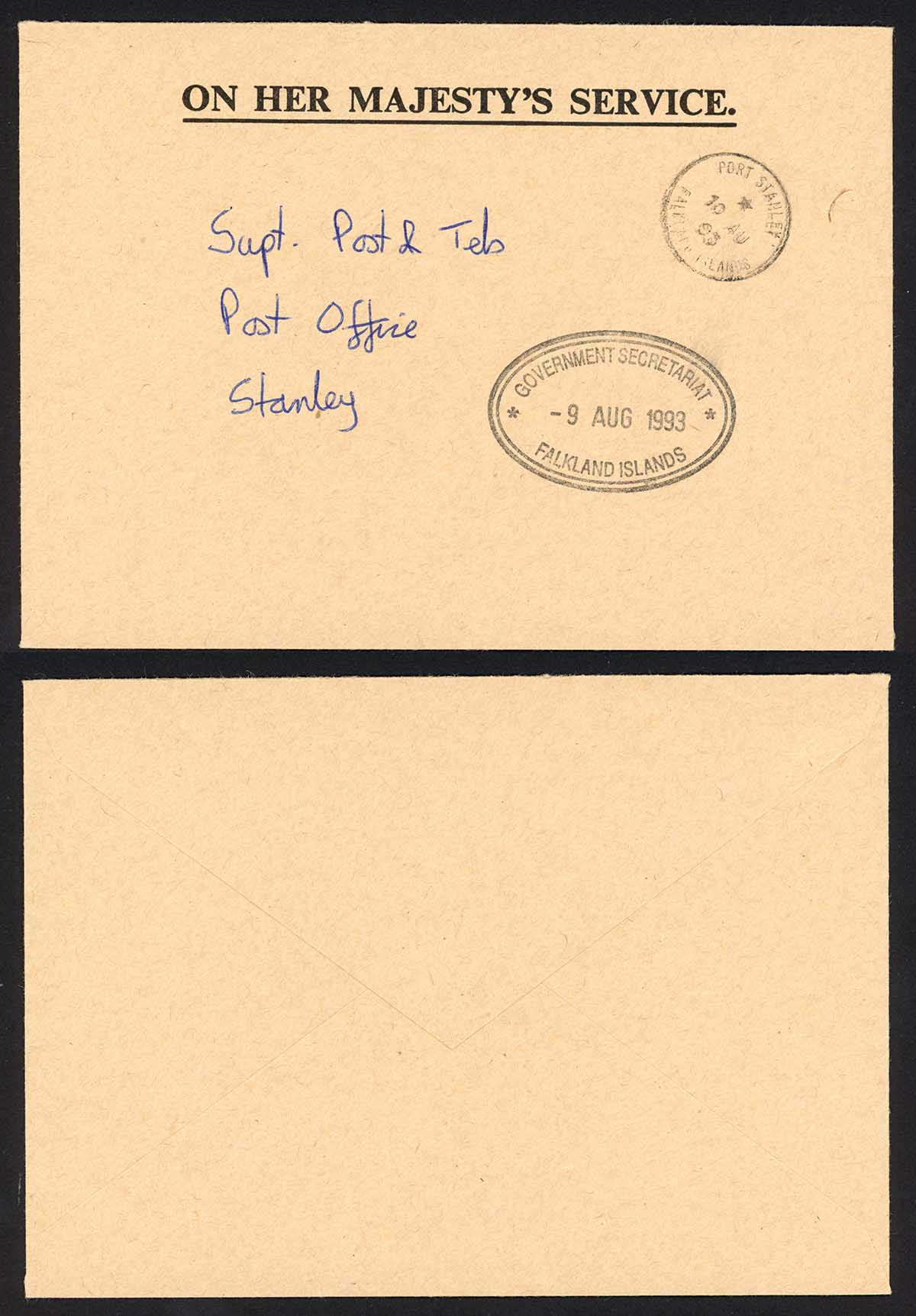 Falkland Is OHMS Government Secretariat Post Paid Cover