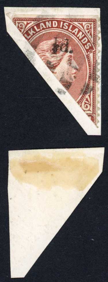 Falkland Is SG13 1/2d on half of a 1d on small piece cat 325