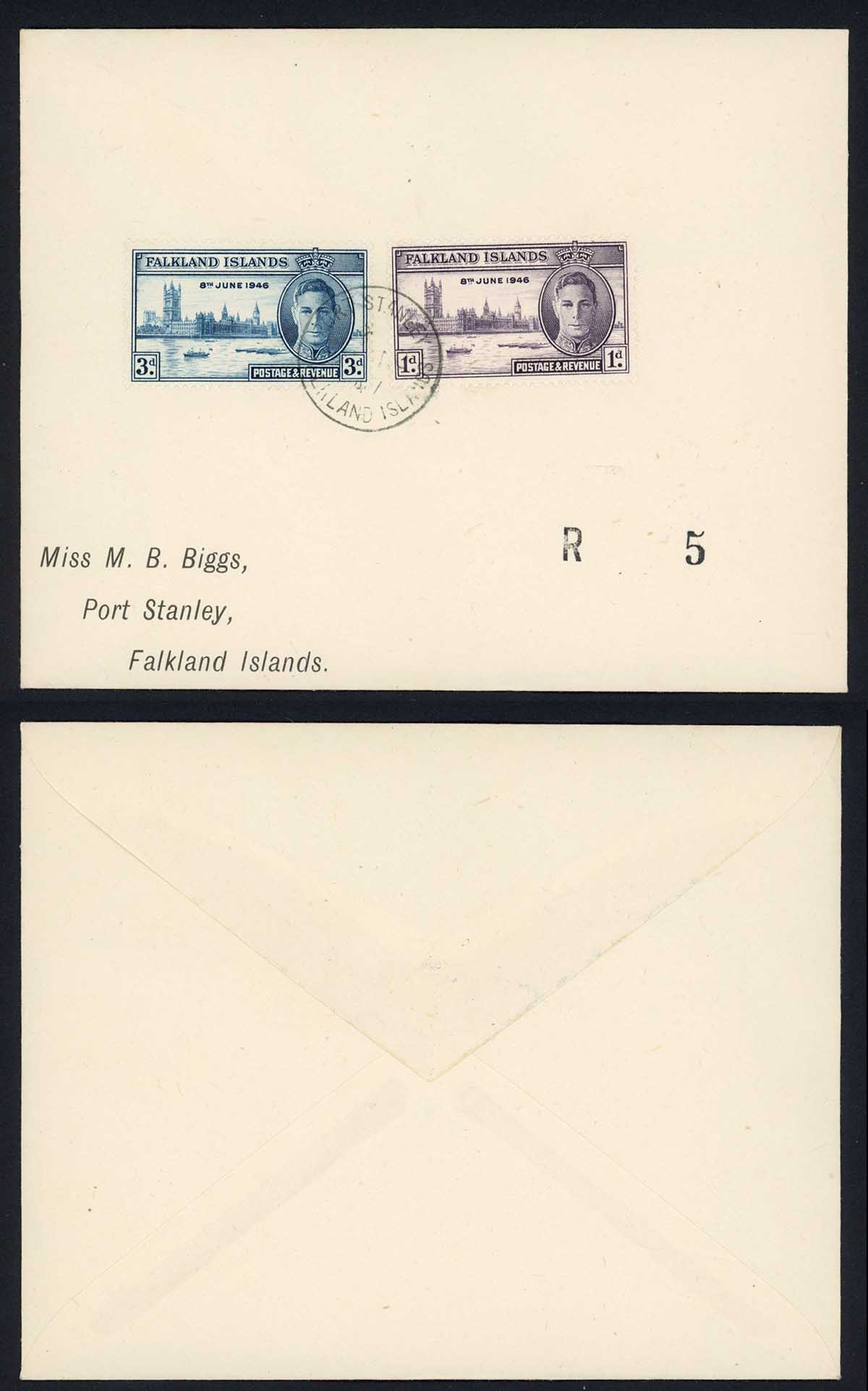 Falkland Is SG164/6 Victory set on cover (not FDC)