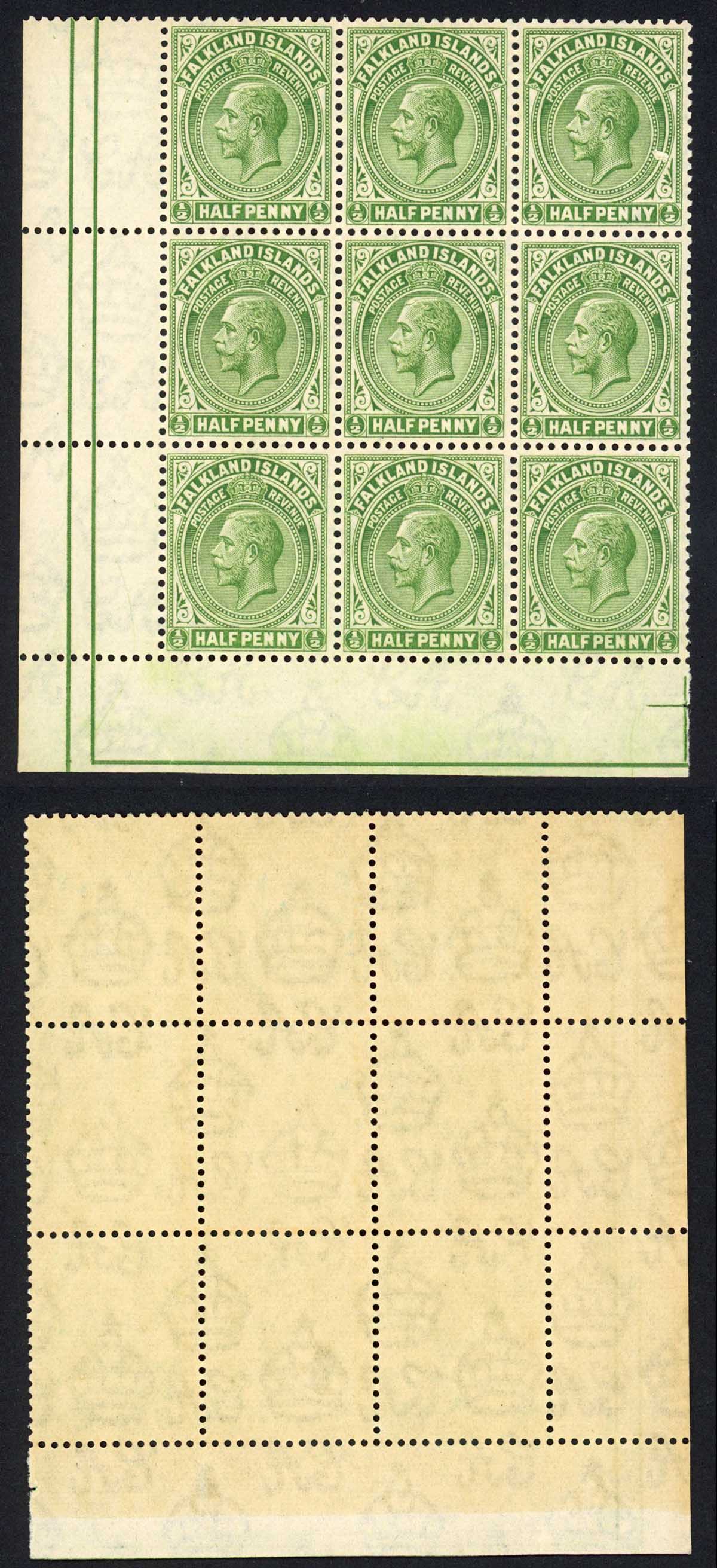 Falkland Is SG73 1/2d Yellowish Green DAMAGED VALUE TABLET Wmk Script U/M
