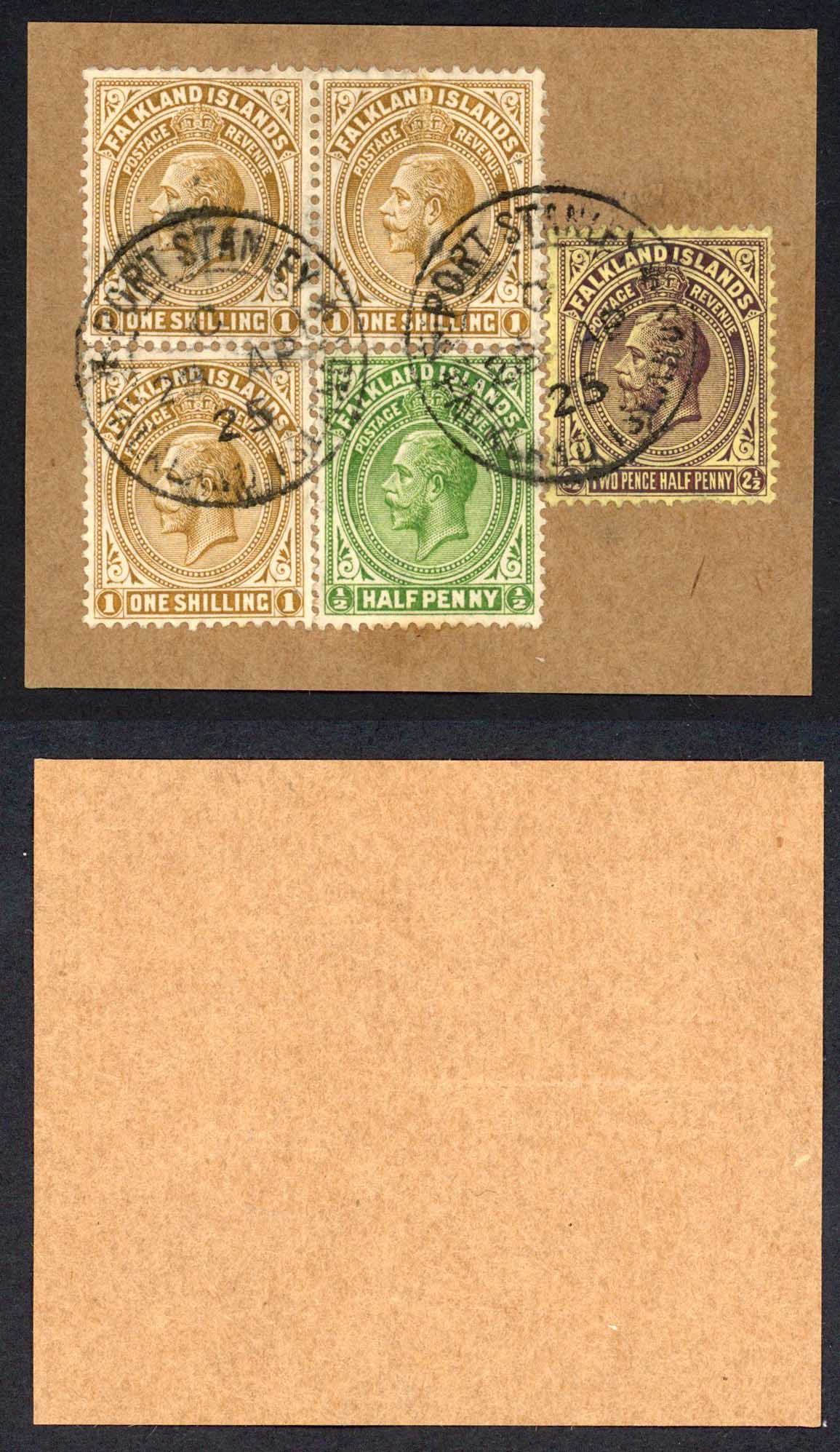 Falkland Is SG73 SG77 and SG79 x 3 Wmk Script on piece Cat 192++ pounds