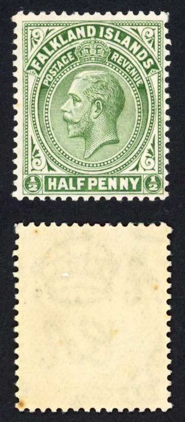 Falkland Is SG73a 1/2d Green Wmk Script U/M