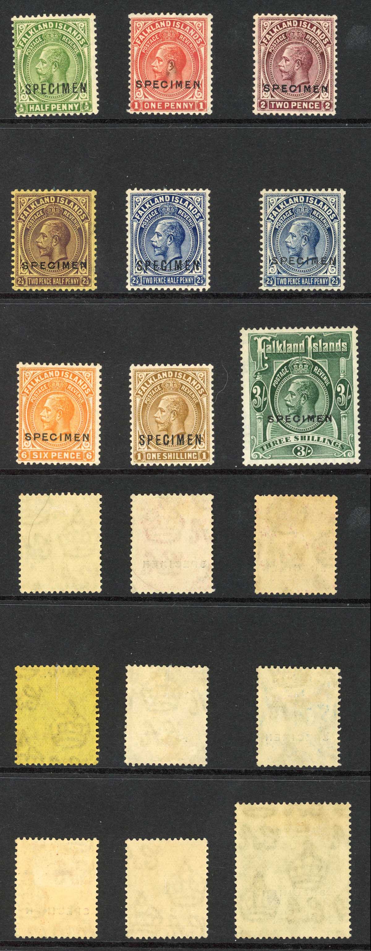 Falkland Islands SG73s-80s 1921 Specimen set of 9 M/M Cat 850 pounds