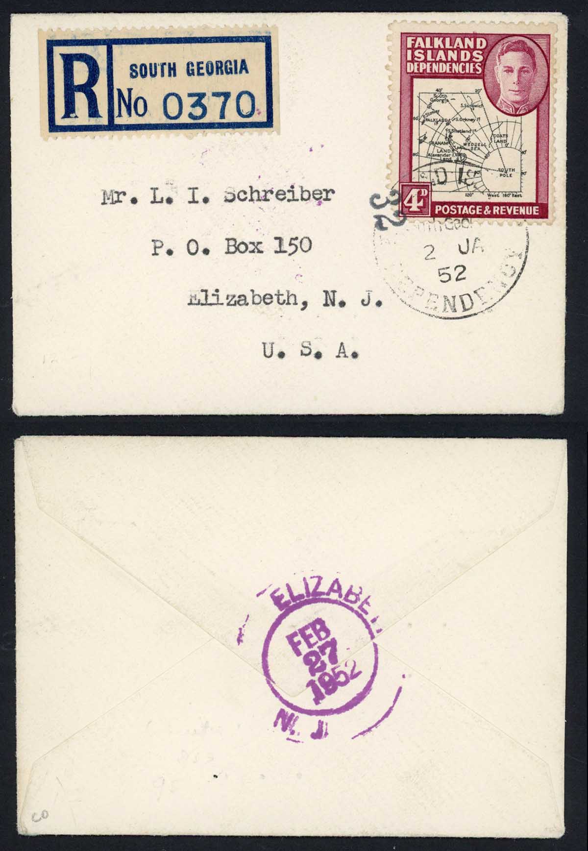 FID 4d Thick map on Miniature Registered cover from South Georgia